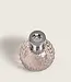 De Lampe Berger Giftset Disco Rose valt op door zijn ronde vorm en het damier-patroon in glas, afgewerkt in een zachte roze tint.